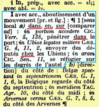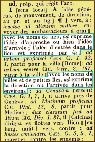 Il est particulièrement intéressant de constater que le dictionnaire fait ressortir vigoureusement la différence entre « in » et « ad » sur ce point.