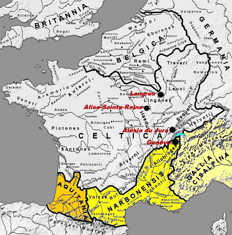 Les Lingons (« Lingones » sur la carte) assuraient un cantonnement abrité et un minimum d’approvisionnement au moment où les autres Gaulois appliquaient la politique de la terre brûlée. Mais César ne pouvait pas rester à la frontière ouest et sud-